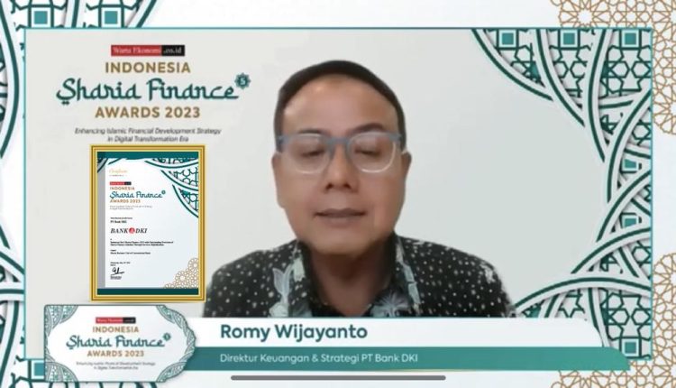 Jakarta, Businessnews – Direktur Keuangan & Strategi Bank DKI, Romy Wijayanto (kanan) menerima penghargaan dari Warta Ekonomi sebagai “Indonesia Best Sharia Finance 2023 with Outstanding Provision of Sharia Finance Solution Through Services Digitalization, (Category: Sharia Business Unit of Conventional Bank)” yang diserahkan oleh CEO & Chief Editor Warta Ekonomi, Muhamad Ihsan (kiri), pada gelaran Indonesia Sharia Awards 2023 yang dilaksanakan pada Rabu (10/05).