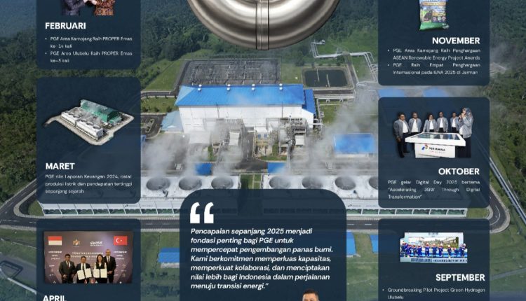 Jakarta, businessnews.co.id – Tahun 2025 menjadi tonggak penting bagi PT Pertamina Geothermal Energy Tbk (PGE) (IDX: PGEO) dalam mempercepat pengembangan dan pemanfaatan energi panas bumi. Melalui berbagai inisiatif strategis, PGE tidak hanya mendorong transisi energi nasional, tetapi juga memperluas perannya dalam ekosistem energi bersih global. Sepanjang tahun, Perseroan mencatat beragam capaian penting, mulai dari pengakuan atas praktik Environmental, Social, and Governance (ESG) berstandar internasional, peningkatan kapasitas terpasang, hingga penguatan kolaborasi dengan mitra nasional dan global.